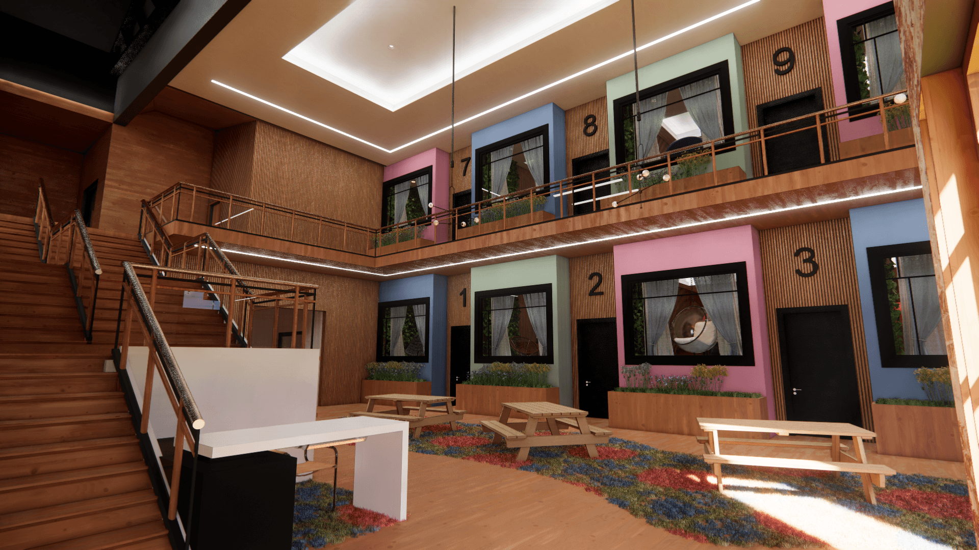 Building these connections between the artists and community will allow them to branch out and breach into an independent career. Though creating strong separation between the private and public buildings will provide artistic residents a sanctioned work space they can feel confident within. It is imperative to find a balance between work, life, and learning.